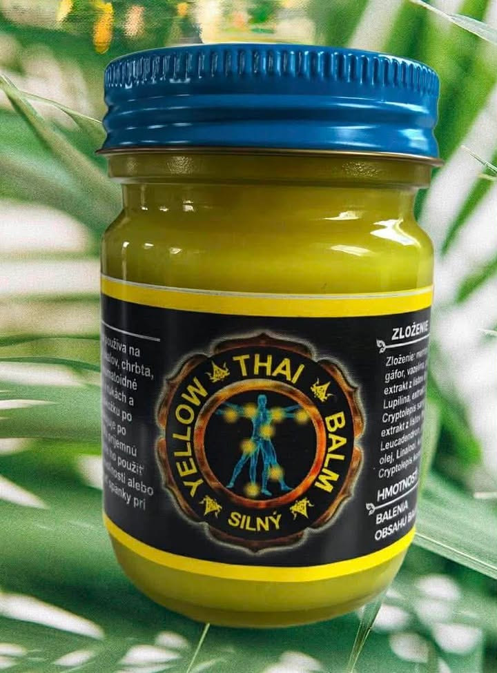 ŽLTÝ ThaiBalm je chladivý balzam sa používa na zmiernenie bolesti svalov, chrbta, kĺbov, vyvrtnutia, reumatoidné bolesti, necitlivosť v rukách a nohách. Vyživuje pokožku po popáleninách, upokojuje po bodnutí hmyzom. Má príjemnú sviežu vôňu a môžete ho použiť ako inhalátor pri nevoľnosti alebo si balzamom potierať spánky pri bolestiach hlavy.